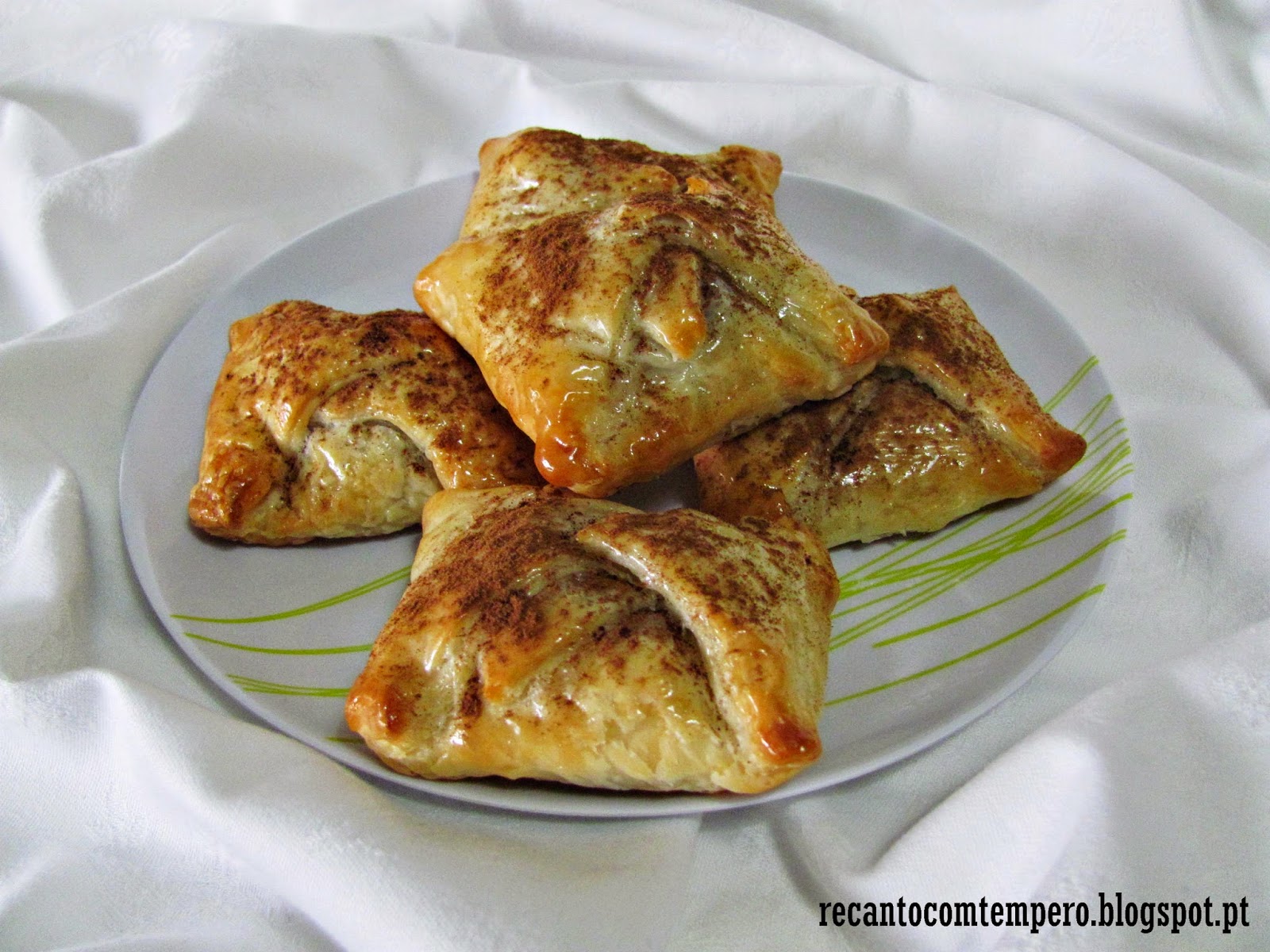Nunca fiz doces com banana, adoro folhados e este além de lindos parecem-me bem apetitosos