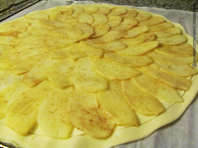 - Disponha as fatias de maçã como preferir (mas convém que fiquem numa camada fina).