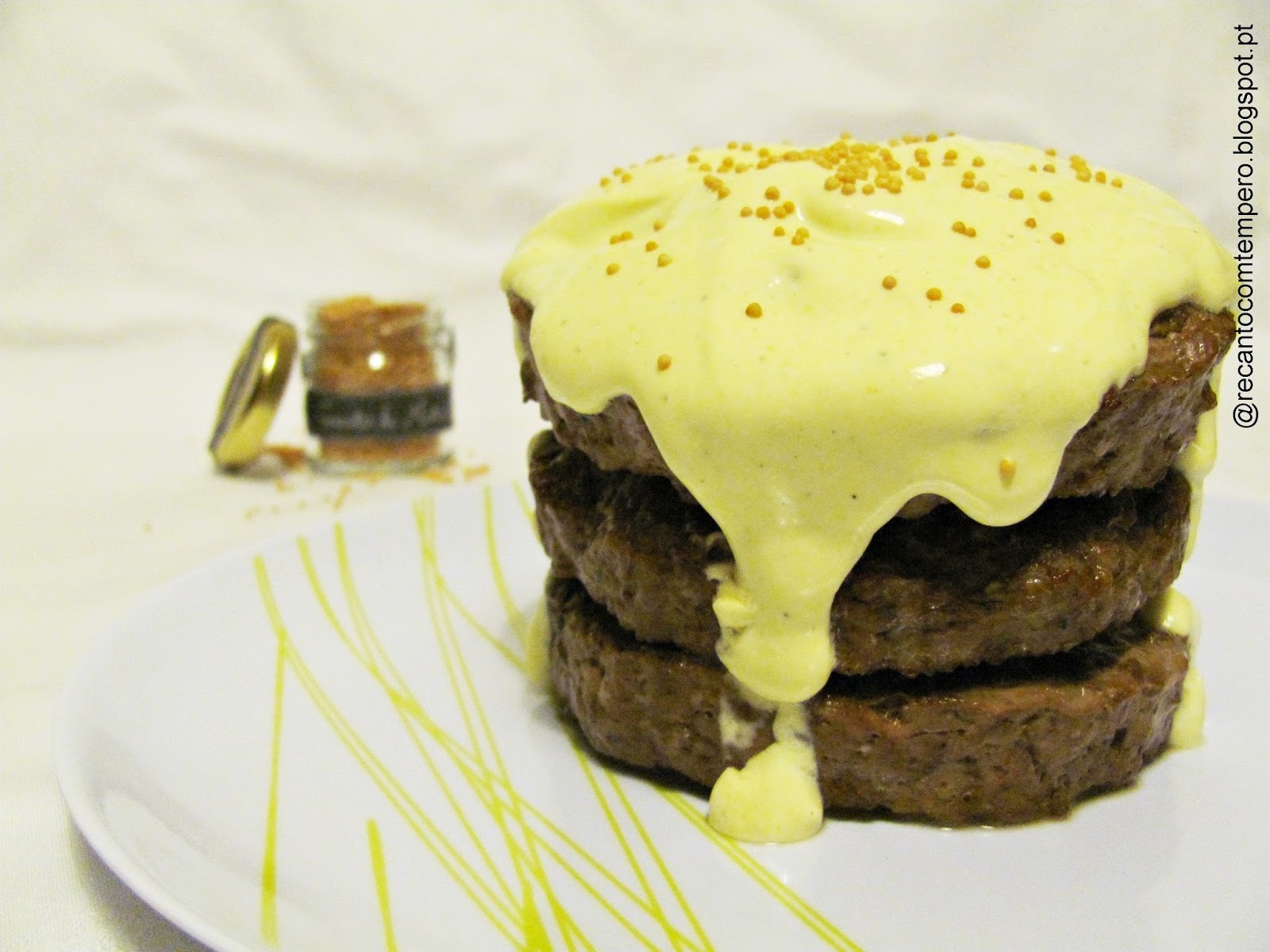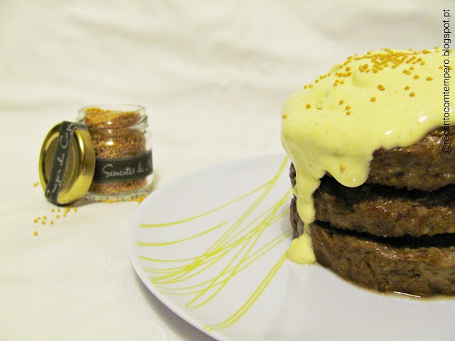 6. Sirva os hambúrgueres cobertos com o molho e polvilhe com sementes de mostarda.