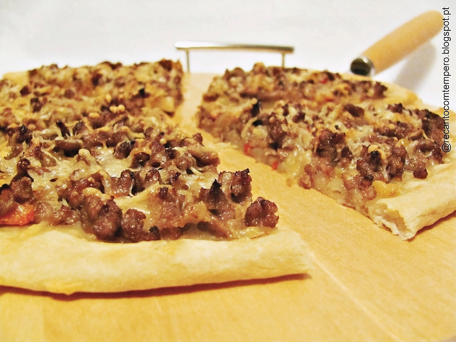 Há tanto tempo que não como uma pizza, e nunca fiz de carne moída. Bem que comia uma fatia dessas! :D