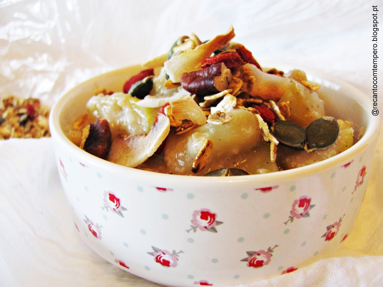 - Deixe arrefecer um pouco e depois polvilhe com granola a gosto.
