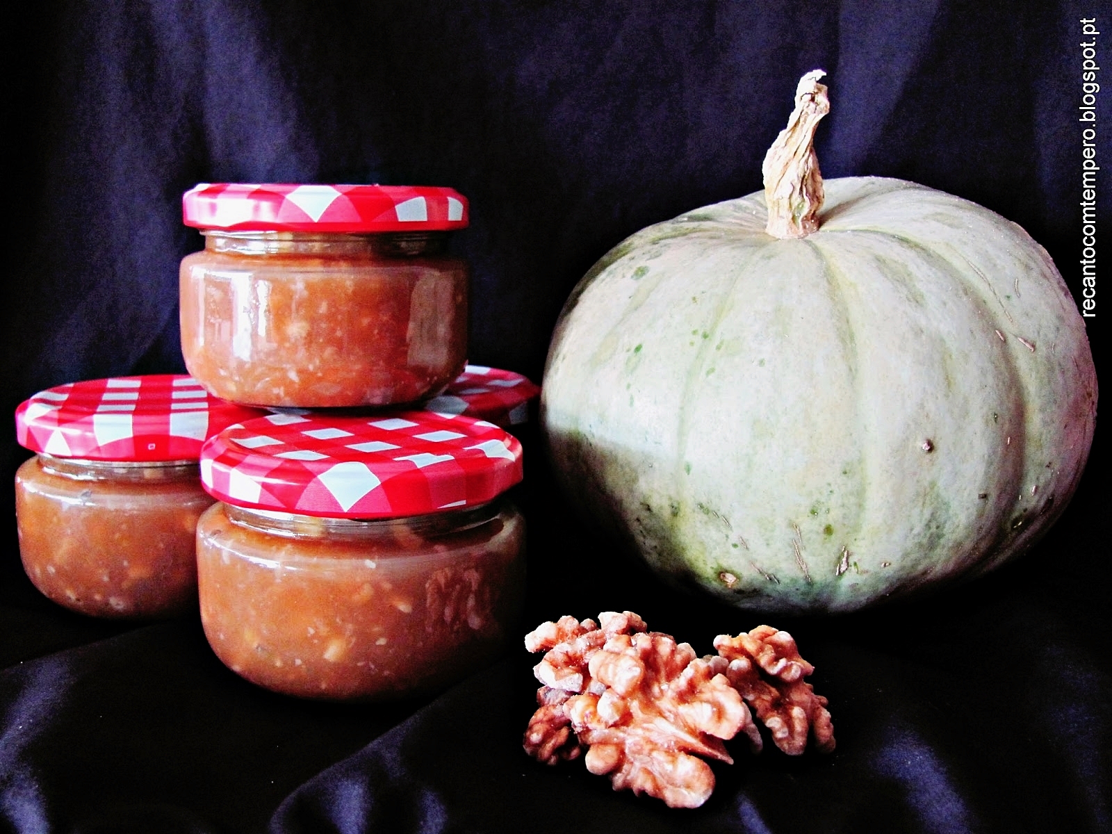 Como já é da praxe dar mimos no Natal feitos por mim, este ano escolhi este doce de abóbora com nozes. Espero que gostem tanto quanto eu, pois é delicioso! Acompanha muito bem os queijos, nomeadamente o requeijão