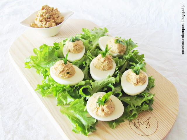 - Sirva os ovos recheados numa cama de folhas de alface e acompanhe esta entrada com tostas ou pão torrado.