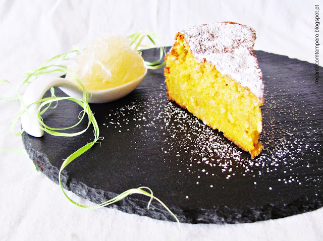 Andava à procura de uma receita (boa!!!) para usar o doce de chila que fiz na Páscoa. A minha querida Ana Rama, mentora da página CakeDiction no Facebook, sugeriu-me este bolo de amêndoa e chila.