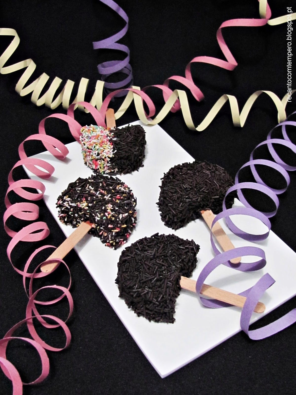 Estamos em época carnavalesca! E como o Carnaval é festejado principalmente pelas crianças, foi a pensar nelas que fiz estes pirulitos de brigadeiro. No entanto, sei bem que nós, adultos, também não resistimos a um pirulito :P