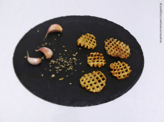 Para cortar as batatas neste formato rendilhado precisam de um cortador apropriado. Aconselho o cortador ondulado da Borner. Com este cortador é possível obter rodelas onduladas ou rendilhadas e fazer palitos ondulados em forma de massa spirelli, uma delícia para os olhos! Podem ver neste vídeo como utilizar o cortador, fácil e eficaz.